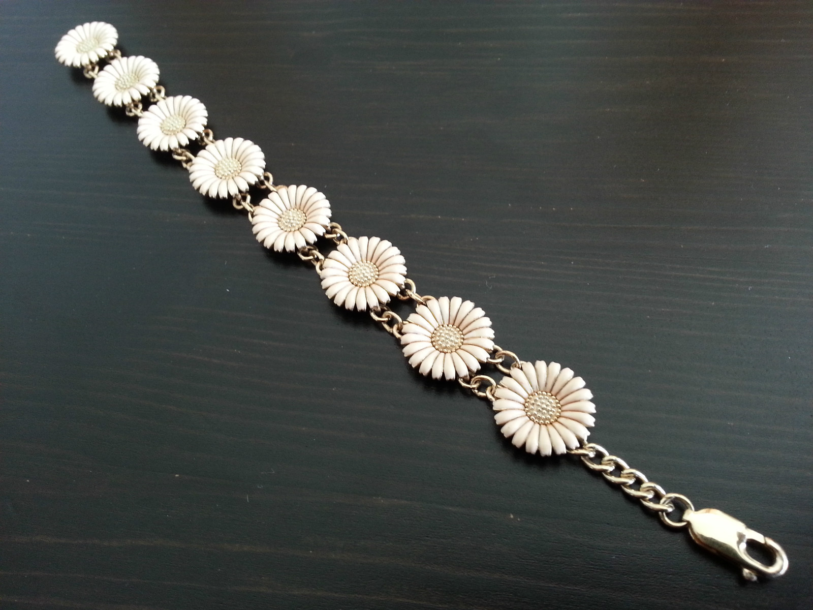 Story By Kranz & Ziegler gold plated brilliant cut pink enamel daisy solid silver bracelet Posted by Unknown on March 16, 2015 Get link Facebook X Pinterest Email Other Apps Stunning Story By Kranz & Ziegler gold plated brilliant cut pink enamel daisy solid silver bracelet Solid silver hallmark: 925 KrZi maker : Kranz & Ziegler Silversmith Daisy diameter: 15 mm Chain bracelet length: 175 mm / 6.89 inches Weight: 18.2 grams Condition: see photos (in my opinion perfect, some patina on the back, but it is normal for silver item) BUY IT NOW Story: When Crown Princess Ingrid 24 May 1935 married Crown Prince Frederik, she got the brooch of his father in memory of his mother, Princess Margaretha of Sweden, who died in 1920 only 38 years old. Shortly after Princess Margaret's birth in 1940 several prominent jewelers in Denmark produced daisy series in silver with enamel. Anton Michelsen, Volmer Bahn, Bernhard Hertz and Jysk Emblem factory made daisy jewelry after Queen Margrethe's birth. Since then some stopped while Anton Michelsen is taken over by Georg Jensen and Bernhard Hertz has taken over the companyLund Copenhagen. They all should be considered real and common to Daisy-Marguerite jewellery is that they are variations with inspiration from the original piece that was manufactured in Sweden. SEE OTHER ITEMS Shipments: UK delivery: Second class Standard Recorded Signed For™ Special delivery Next day International delivery: Standard - Airmail small parcel Signed For - Standard International Signed For™ IS Express delivery - Parcel force Express Comments