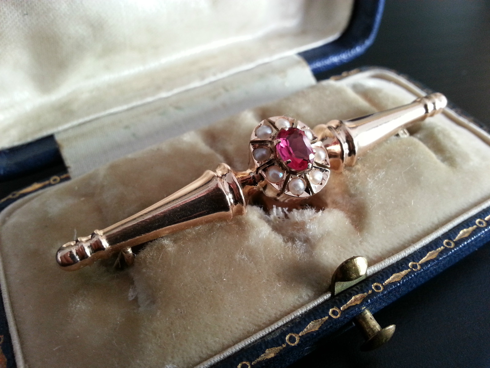 Stunning Art Nouveau Imperial Russian 56 rose gold brooch pearls & ruby cluster great gift